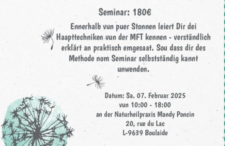 Bitte beachten sie, dass die alternative Gesundheitsberatungen nur auf luxemburgisch oder deutsch erfolgen.